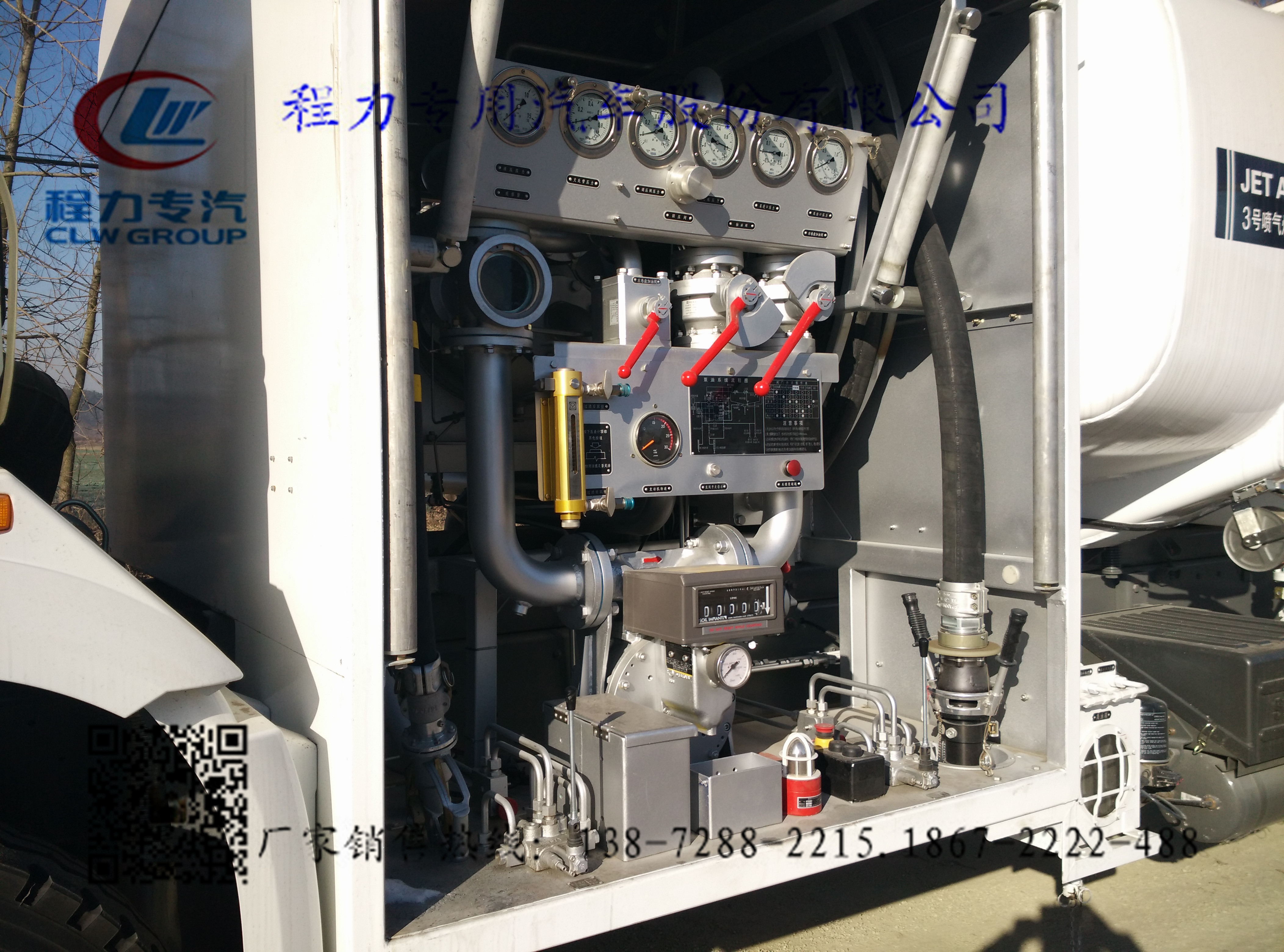 程力第一臺飛機加油車面世:采用東風勁卡底盤,整車型號:CLW5072GJYD4型加油車,底盤型號:DFA1070SJ35D6,  實際容量:5方,總質量:7.3噸,整備質量:3.865噸,額定載質量:3.24噸, 整車長度:5995*1960*2400mm, 軸距:3300mm,發動機采用4DW93-84E4一汽解放汽車有限公司無錫柴油機廠錫柴發動機,罐體采用4MM不銹鋼板制作。帶歐標罐口,導靜電線盤,專用油泵防溢漏探桿及插座,海底閥,浮球液位計,泵轉速表,泵進口真空表(接管),泵出口壓力表(接管),泵出口采樣閥,過濾后取樣閥,過濾分離器排污口取樣閥,取樣閥合并緩速筒,取樣器取樣回收油桶,YC-12型壓差計,閉路目測透明取樣器,高液位報警器,低液位報警器(帶開關),壓力可調式溢流閥,HYJ-63X接頭閥,80WGF-60/10過濾分離器,腰輪流量計,卷盤槍。